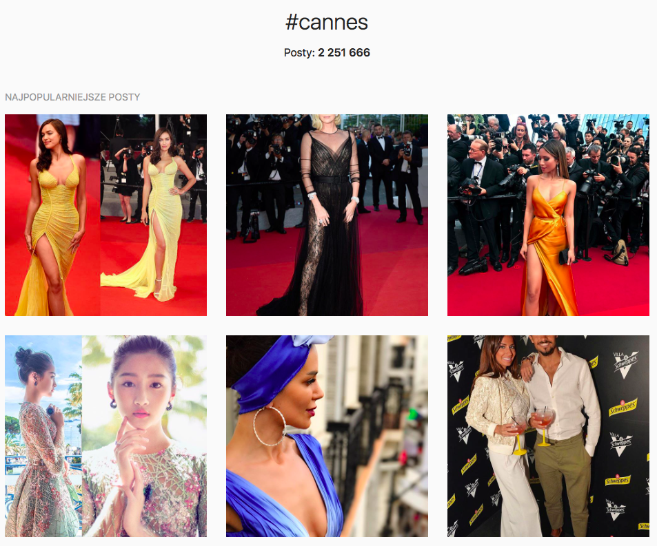 Anglojęzyczny internet wokół tematu Cannes zdominował Instagram. Powyżej najpopularniejsze zdjęcia dla #Cannes.