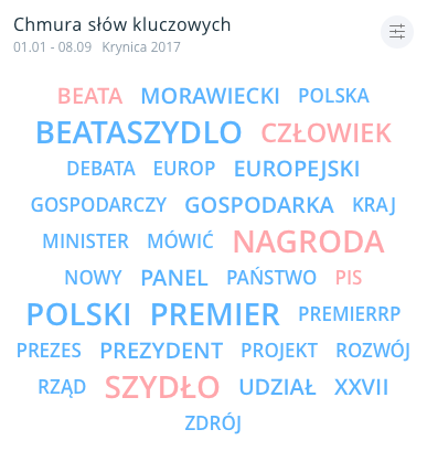 Używane w kontekście słowa kluczowe nie pozostawiają wątpliwości – obok “gospodarka” najczęściej padały te związane z premier Beatą Szydło i otrzymaną przez nią nagrodą Człowieka Roku – najczęściej w kontekście negatywnym.