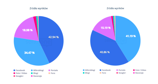 Źródła dyskusji – widok z SentiOne. Po lewej – wszystkie wzmianki – po prawej tylko wzmianki negatywne.