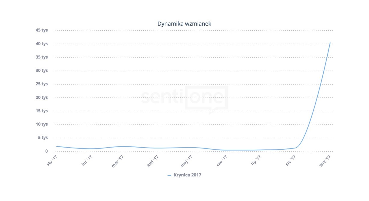 Wykres dynamiki wzmianek. Widok z SentiOne.