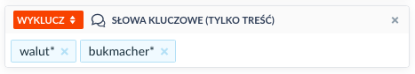 Aby pozbyć się niepotrzebnych wyników wykluczyłem odmiany słów “waluty” i” bukmacherka” (występowały często w połączeniu ze słowem “kurs”, a nie o to nam chodzi):
