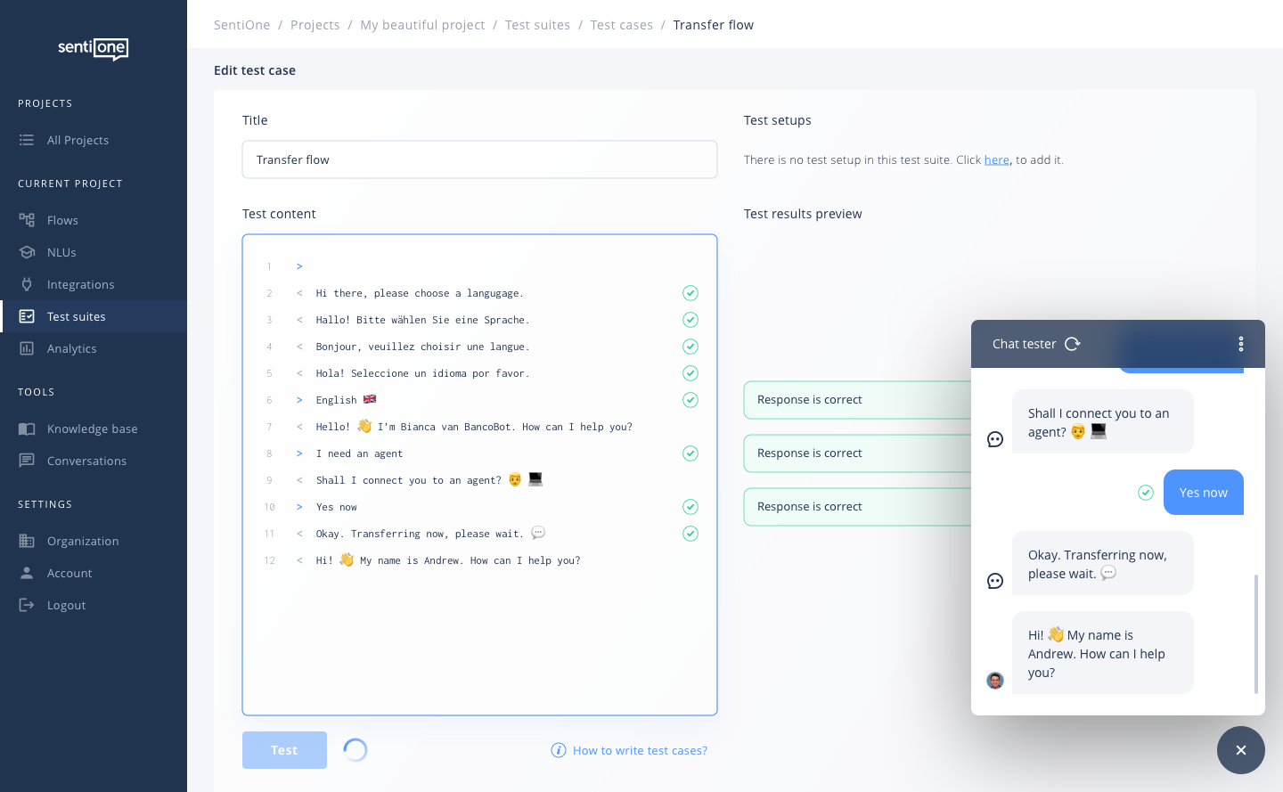 SentiOne Automate hat ein eingebautes Testfeature für Bots, was externe Tools überflüssig macht!