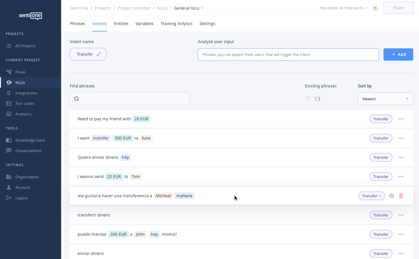 - Constant NLU training