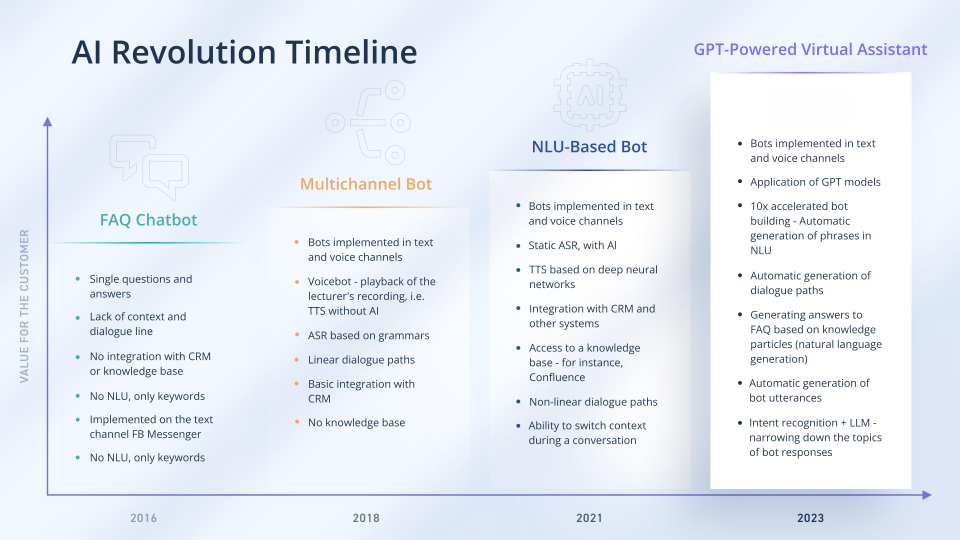 W ciągu ostatnich paru lat wiele się zmieniło w branży chatbotów AI. Najlepiej obrazuje to poniższa grafika: