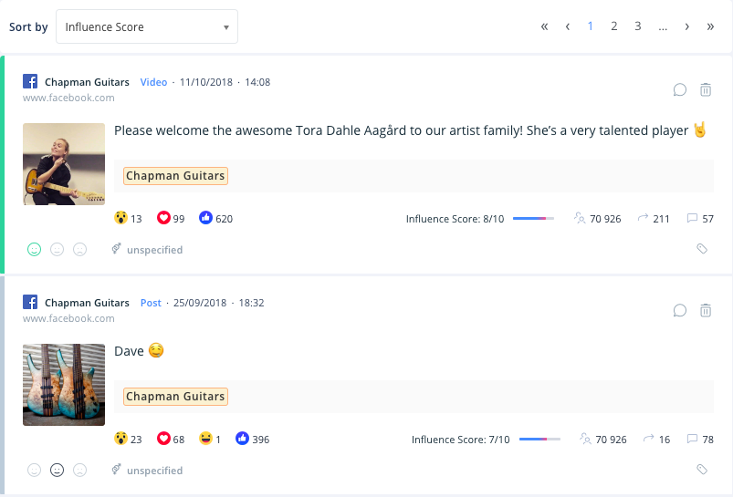 Knowing which posts are more popular is crucial when it comes to working on increasing our brand awareness – it’s good to know which mention has the highest reach and, hopefully, is it positive.