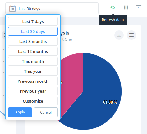 When you create a new dashboard and choose one of fixed time periods, such as: Last 7 days, Last 30 days, Last 3 months, Last 12 months, This month, This year, our system will calculate your results automatically and refresh your dashboard. You can still do it on your own but from now on it won’t be necessary.