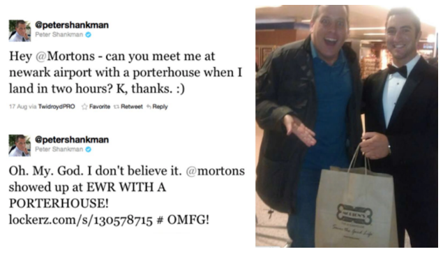One of the most brilliant stories from the customer service world is the one of Morton’s Steakhouse. A big fan of Morton’s steaks, Peter Shankman, tweeted the brand jokingly asking whether they could meet him at Newark airport with their steak. He landed and indeed, brand’s representative was there, waiting for him with a big bag of Morton’s Steakhouse goodies. Unbelievable? Yet it’s true!