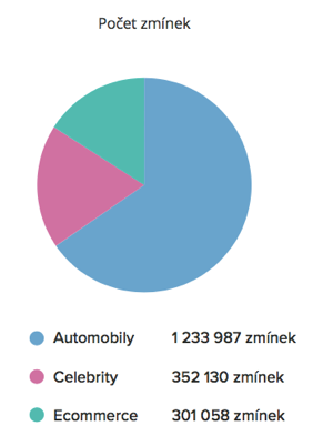 Nejvíce se ze všech kategorií v roce 2017 hovořilo na internetu o Automobilech. Co do počtu zmínek s celkovým výsledkem 1 233 987, představujícím 65,41%, byla tato kategorie jasným vítězem. Následována byla potom kategorií Celebrity, která tvořila 18,67% a jako třetí se umístila Ecommerce s 15,93% všech zmínek.