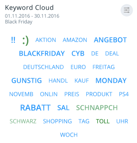 SentiOne zeigt die Wörter, die letztes Jahr am häufigsten im Zusammenhang mit dem Black Friday online erwähnt wurden