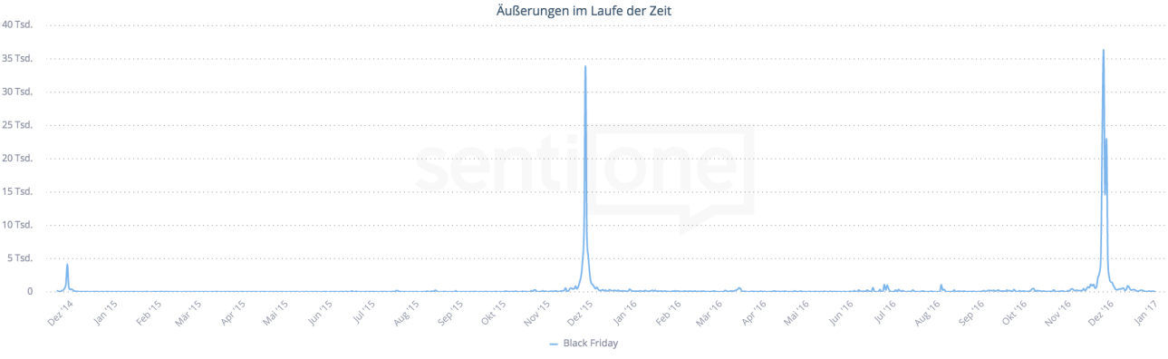 Online-Erwähnungen über den Black Friday von den letzten drei Jahren generiert von SentiOne