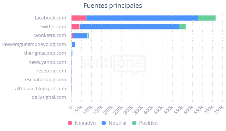 De acuerdo a la gráfica de Fuentes Principales, la conversación o menciones ocurrieron en Facebook, Twitter, así como en sitios de noticias como Wonkette, Yahoo News, Resetera, entre otros.