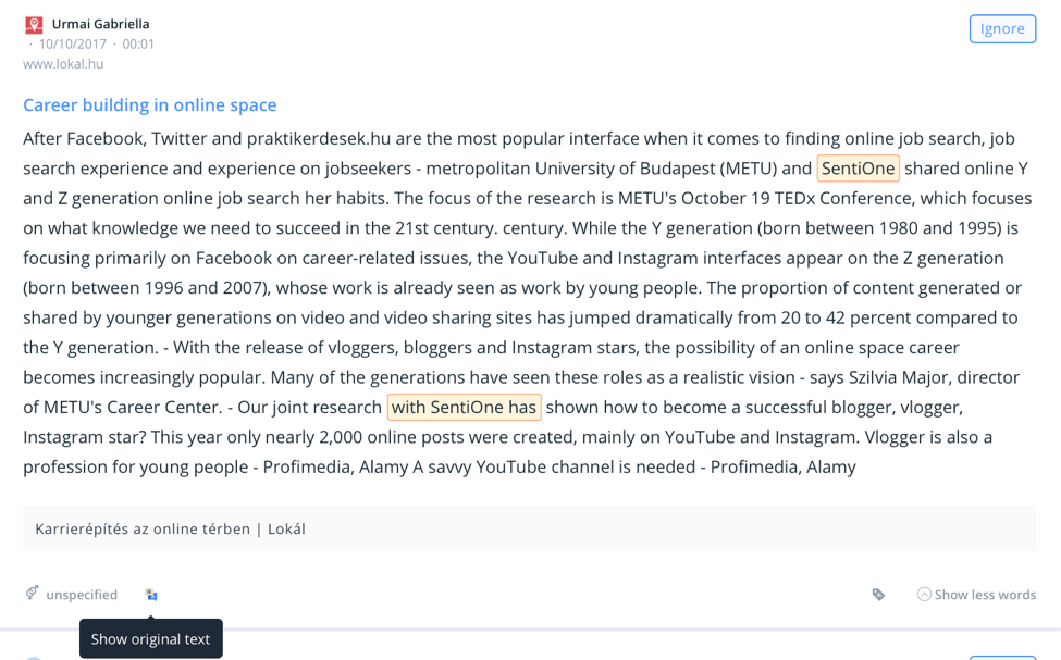 We’d like to kindly remind you that at SentiOne you can monitor mentions written in multiple languages. If you hesitate from using multimarket dashboards because you are not familiar with all the languages, simply try the translation functionality.