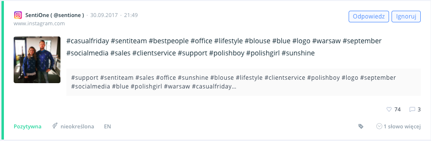 Reactions recognition on Facebook is not all. SentiOne has a lot of features to help you fully understand the web. On Instagram, other than the comments, we gather the hearts received by uploaded photos.