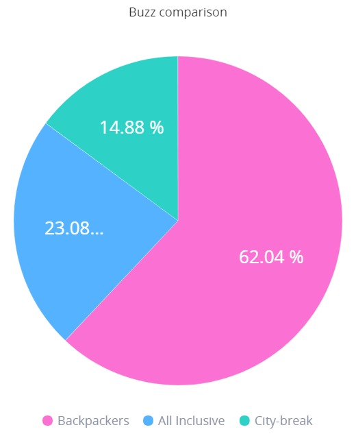 Buzz comparison for “Backpackers”, “All Inclusive”, “City break” – 24.04.2018-23.04.2019