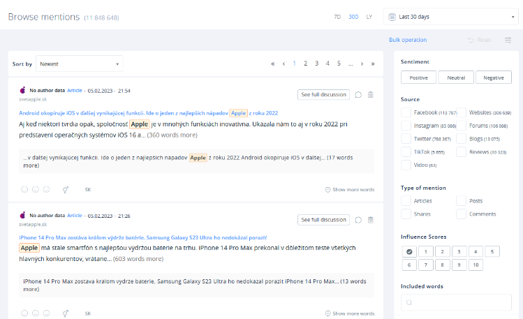 As a result, “brand monitoring tools” are the same services and platforms that you’d use to perform regular social listening. Our very own SentiOne Listen belongs to this family — and using it for monitoring brand mentions is one of its most common use cases!