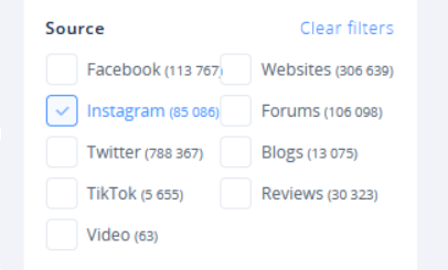 Already, you can do some pretty nifty tricks. You can see we have a metric ton of results to go through — a huge ask even for the most dedicated brand managers. Let’s narrow them down, then. Filtering allows us to only select mentions that came from a specific source, such as Instagram.