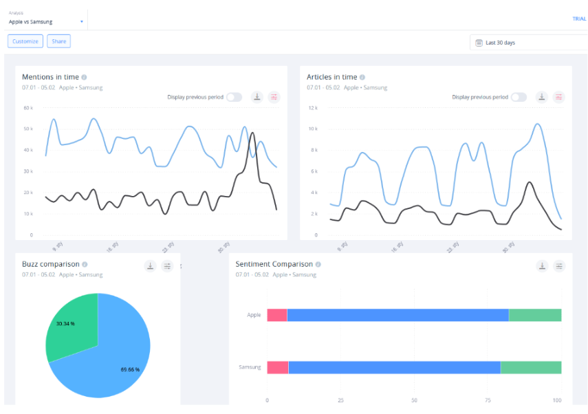 Despite the name, brand monitoring isn’t just limited to your own brand. Oftentimes, you’ll need to compare yourself to the competition — and with SentiOne Listen, you have the best tool for the job.