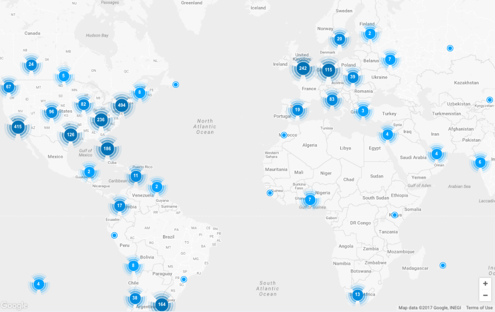 *a pöttyök azt mutatják, hogy hol adtak meg helyszínt az emberek/cégek/márkák saját közösségi média posztjaiknál, képeiknél, ajánlataiknál – és írták vagy hashtaggelték oda a ‘blackfriday’ szót