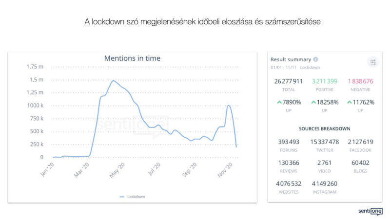 Összehasonlításképp: 2019 top kifejezése, a ‘climate strike’ 2019-ben összesen 134 000 alkalommal jelent meg a publikus beszélgetésekben, ami eltörpül az idei kifejezés teljesítménye mellett.