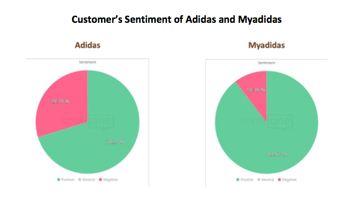 After analyzing and understanding the online behavior of Adidas and Myadidas customers in detail, we are still left with our firstly stated research question. By excluding neutral posts form this analysis we were able to analyze only posts which stated a clear opinion on the brand. From the two pie charts we can clearly see that positive posts overwhelm the negative ones. Therefore, Adidas was able to build an overall positive brand image for the core brand as well as for its sub-brand Myadidas. Moreover, the sentiment for Myadidas strongly outperforms the one for Adidas (89.61% vs. 70.21%). It seems that the personalization aspect, which is connected to Myadidas, enabled a more individualistic and intimate two way communication. Adidas successfully implemented this communication for its sub-brand Myadidas.