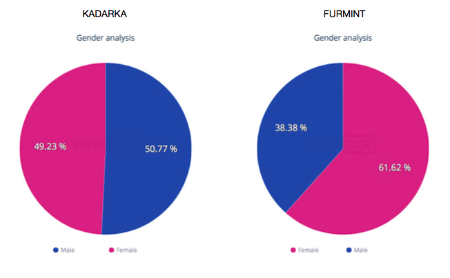 Emellett, a borkedvelők nemi megoszlásában is jelentős különbség mutatkozik. Míg a Kadarkáért szinte ugyanolyan lelkesedéssel rajong a férfi és a női törzsközönség, addig a Furmint úgy tűnik, sokkal inkább feminin bor. Legalábbis a kapcsolódó webes bejegyzések szerzőinek neme alapján.