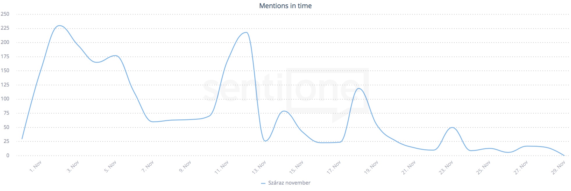 A Száraz Novembernek is története van, ráadásul nem is új. Jó látni, hogy míg 2015-ben szinte semmilyen online buzzt nem generált a téma (kb. 4 darab #szaraznovember árválkodott összesen a neten), addig 2016-ban már közel 1700 tartalmat publikáltak szerte a weben a témával kapcsolatban, idén pedig már majdnem 2300 online említést rögzített a SentiOne (október 31. – november 29. időszak alapján). A legtöbbet persze Facebookon, ugyanakkor a Twitter is egyre népszerűbb!