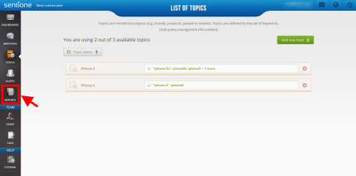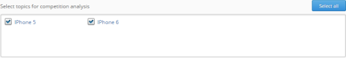 Then you choose the topics you want to have included in the report. Topics chosen in this section will not be compared, but shown as two separate summaries. If you would have chosen “iPhone 5″ as your main topic and then chosen “iPhone 5″ and “iPhone 6″ in the “Select topics for the report” box, data for “iPhone 5″ topic will be shown twice.