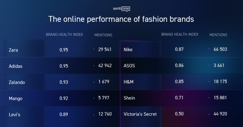The Polish company SentiOne recently launched a new feature — SentiOne Insights. It’s the first feature of its kind in the internet monitoring industry — it allows users to instantly generate a quick summary of critical information about a designated brand for a given period. This will speed up the work of marketers and make it easier to control, for example, an image crisis. To test the new feature, SentiOne checked which fashion brands enjoyed the highest Brand Health Index during the last month.