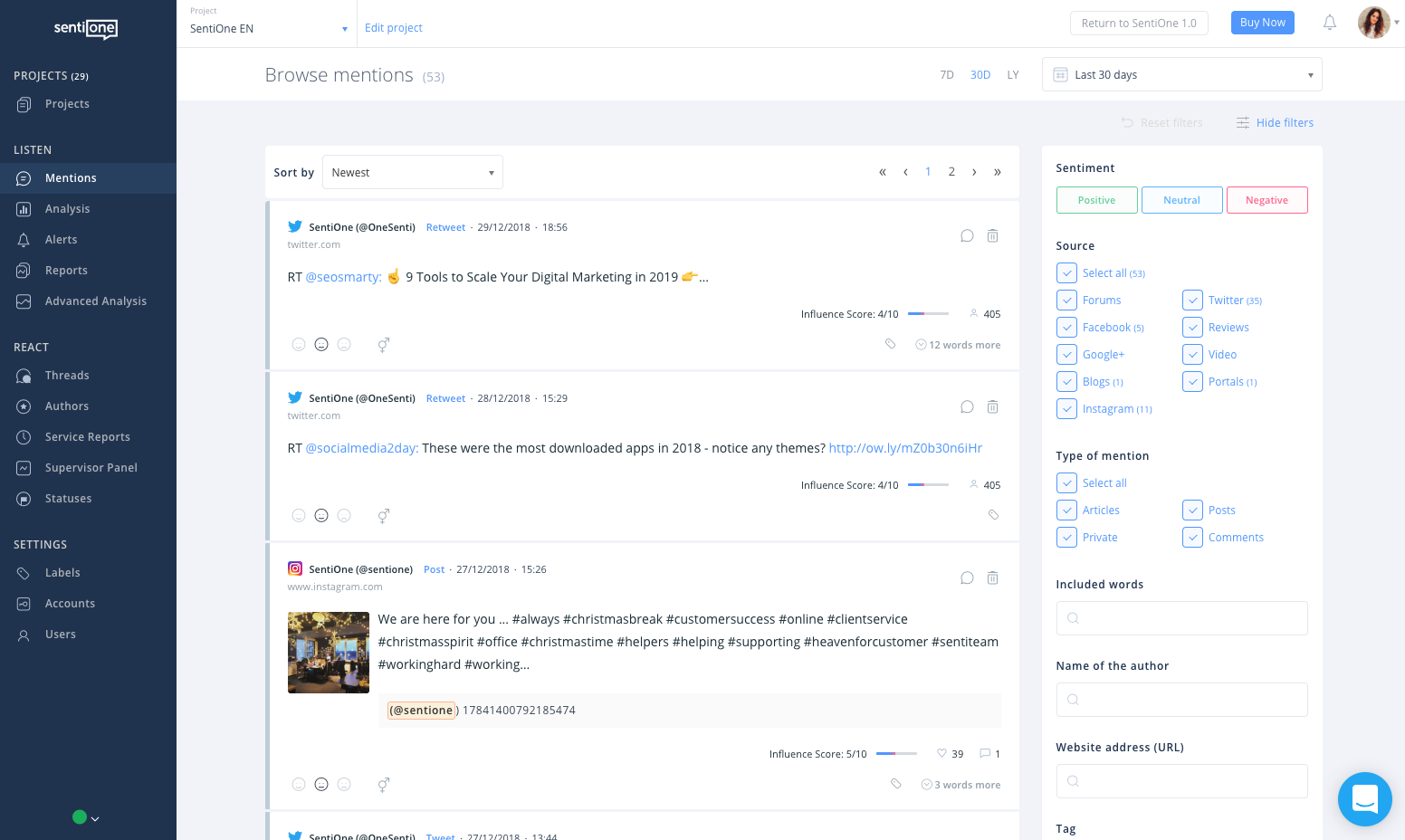 Time sure flies. Another year is coming to an end and we are proud to say this year we have moved forward with our technology like never before. We have created an innovative solution to help companies automate tasks related to social listening and customer service. Check out what’s new in SentiOne.