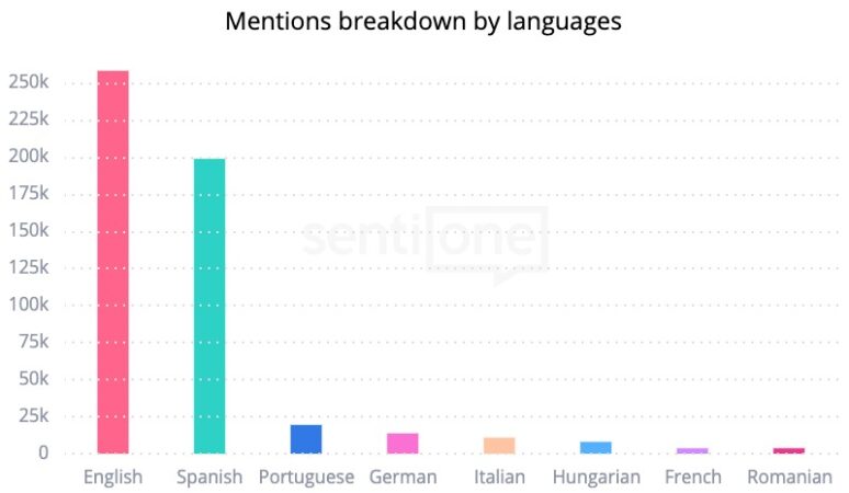If we observe the Oscars in the 75 languages monitored by SentiOne, we can see that not only English-speaking people are interested in the Oscars. People who speak Spanish, Portuguese, Italian, Hungarian, French, and Romanian tend to discuss the Oscars the most.