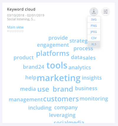 Do dotychczasowych funkcji, dodaliśmy opcję eksportu chmury słów w formie pliku CSV/Excel. Teraz w pobranym pliku możesz sprawdzić, ile razy określone słowo kluczowe pojawiło się w dyskusji na wybrany temat w określonym czasie.