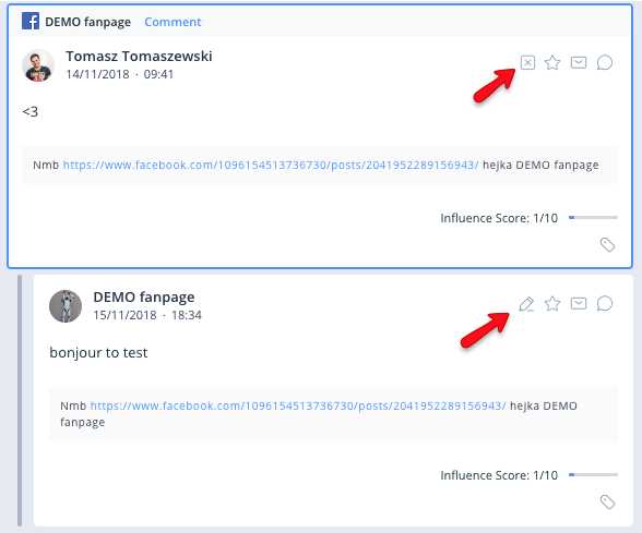 Negatywny komentarz na fanpage’u? Jako administrator zapewne chcesz zadbać o treści publikowane na własnym profilu. Dzięki SentiOne React możesz zarządzać komentarzami z przeróżnych źródeł, w tym z Facebooka z poziomu jednego narzędzia. Możesz nie tylko odpowiadać na posty i komentarze użytkowników, ale także ukrywać je bez logowania się na profil.