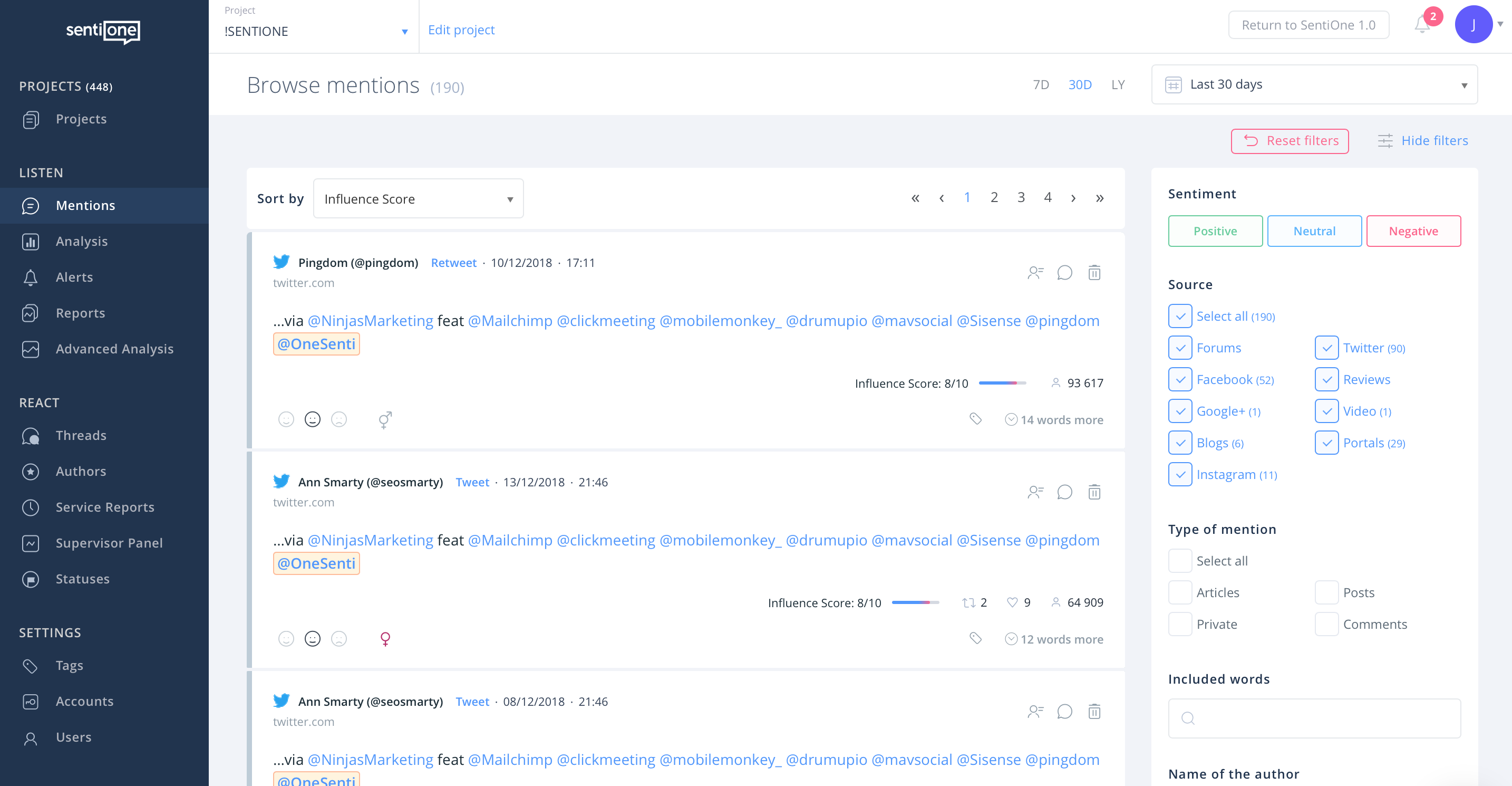 - Dodaliśmy nową opcję sortowania według wartości Influence Score, aby użytkownicy mogli szybko znaleźć najbardziej zasięgowe posty i komentarze.