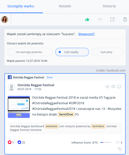 - Zwracanie wątków do obsługi w SentiOne React