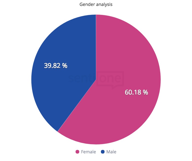 Podział na płeć internautów poszukujących wyjazdów wakacyjnych z okresu 24.06.2018 – 23.07.2018. Wykres z SentiOne