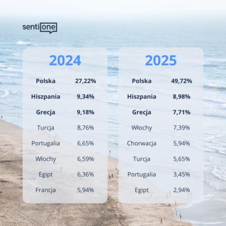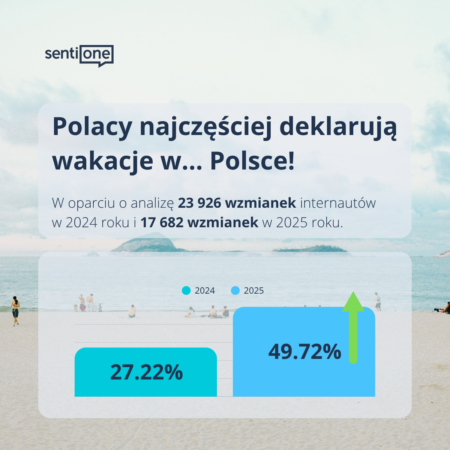 Wszystkie powyższe dane pochodzą z analizy publicznych postów, komentarzy i opinii w polskim internecie, w których użytkownicy dzielili się swoimi planami wakacyjnymi i spostrzeżeniami. Badanie zostało przeprowadzone przez SentiOne, polską firmę technologiczną założoną w 2011 roku, specjalizującą się w monitoringu internetu i sztucznej inteligencji. SentiOne monitoruje na bieżąco dyskusje online — social media, fora, blogi, recenzje — z ponad 7 milionów źródeł i analizuje miliardy wzmianek dziennie. Dzięki autorskim narzędziom AI do analizy sentymentu i naturalnego języka, platforma SentiOne pozwala nie tylko zbierać twarde dane, ale przede wszystkim rozumieć motywacje, emocje i zachowania internautów — co umożliwia tworzenie wielowymiarowych insightów, które wspierają decyzje marketingowe i biznesowe.