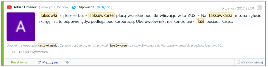 Wśród pozytywnych opinii dotyczących strajku (6,52%) przeważały głównie te doceniające taksówkarzy i podważające legalność działania Ubera i przewozów osób: