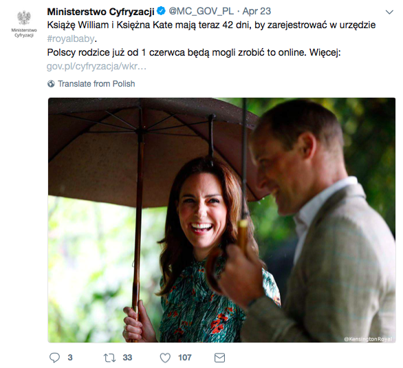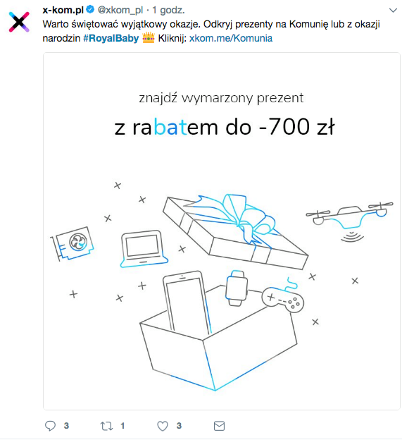 Gratulacje i życzenia popłynęły szerokim strumieniem w mediach społecznościowych, także z Polski! W królewski wątek włączyły się między innymi Ministerstwo Cyfryzacji czy Miasto Warszawa, a także sklepy online, które postanowiły skorzystać z okazji:
