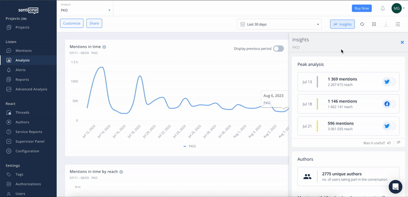 In your Brand Awareness report, we’ve dedicated a whole page to Peaks Analysis, positioned right after the “How much is your brand discussed online?” section. This addition streamlines your reporting, saving you the hassle of manual edits. With Peaks Analysis, you’ll have more actionable insights, and PDF/PPTX reports are now effortlessly ready to go.