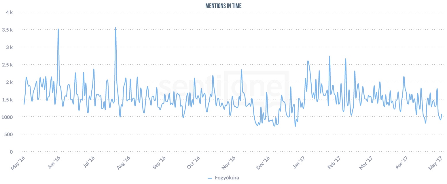 Solely in Hungary, between the time period of May 2016 and May 2017, more than 550 000 people have mentioned ‘diet’ in social and online media. The most popular months were June, August and end of January. No surprise there: pre-craziness at the beginning of summer and post-laziness after Christmas.