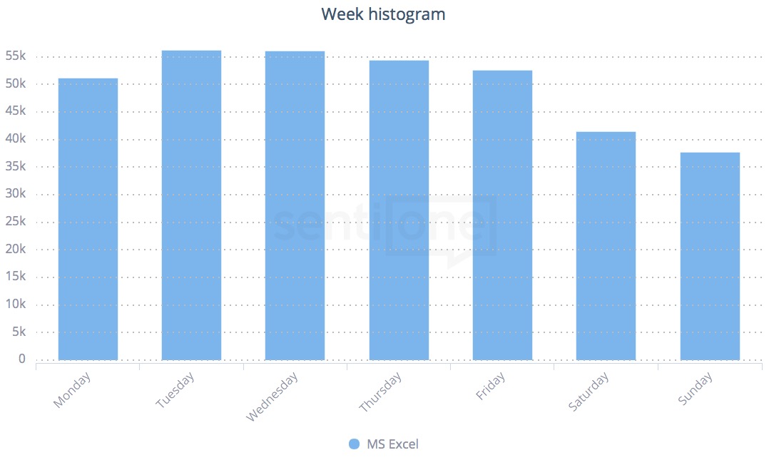 The week histogram is one of the recent features in the system, available in all SentiOne packages. As hour histogram, it is primarily addressed to interactive agencies, media houses and network communication specialists. The analysis of the most attractive days and hours for the brand or industry gives a wide range of possibilities to new media analysts and sociologists as well.