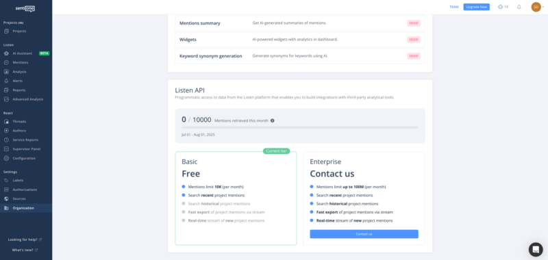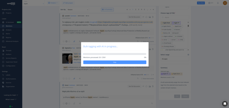 - Increased limit: now up to 100K mentions Work with up to 100K mentions in a single operation, making large-scale analysis and management dramatically more efficient. Perfect for enterprise clients managing long-term projects or high-volume monitoring topics.