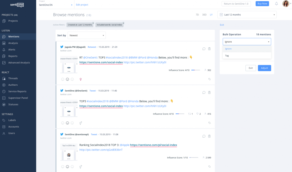 As more and more mentions come in every hour, we decided to let you know, which mentions you had already seen before, when you visit a particular project. Thanks to that, you won’t spend your valuable time to double-check what has been already reviewed.